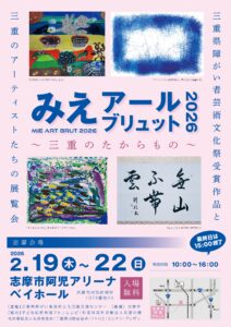 「みえアールブリュット」は、“三重県障がい者芸術文化祭受賞作品と三重のアーティストたちの展覧会”として2022年から始まりました。 「みえアールブリュット2026 志摩会場」を令和8年2月19日(木)~2月22日(日 […]
