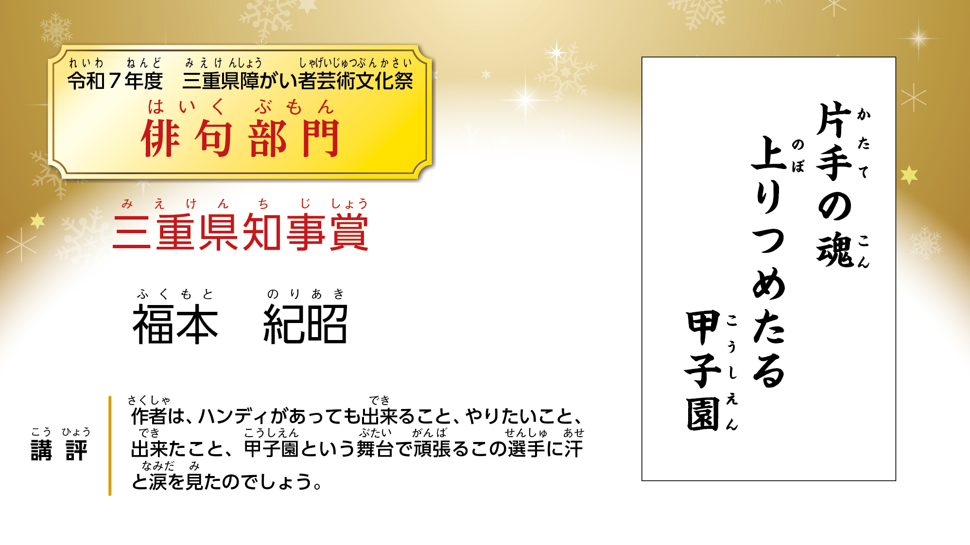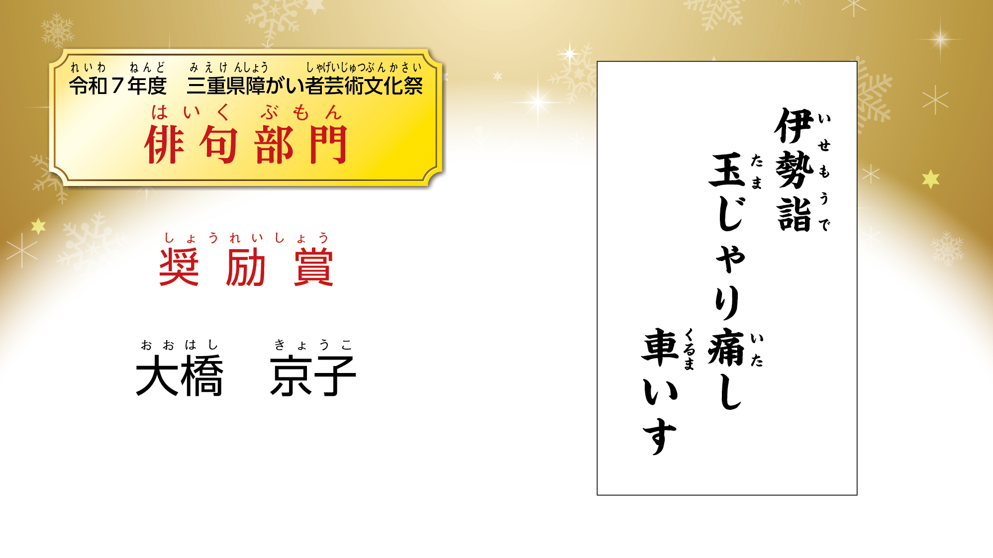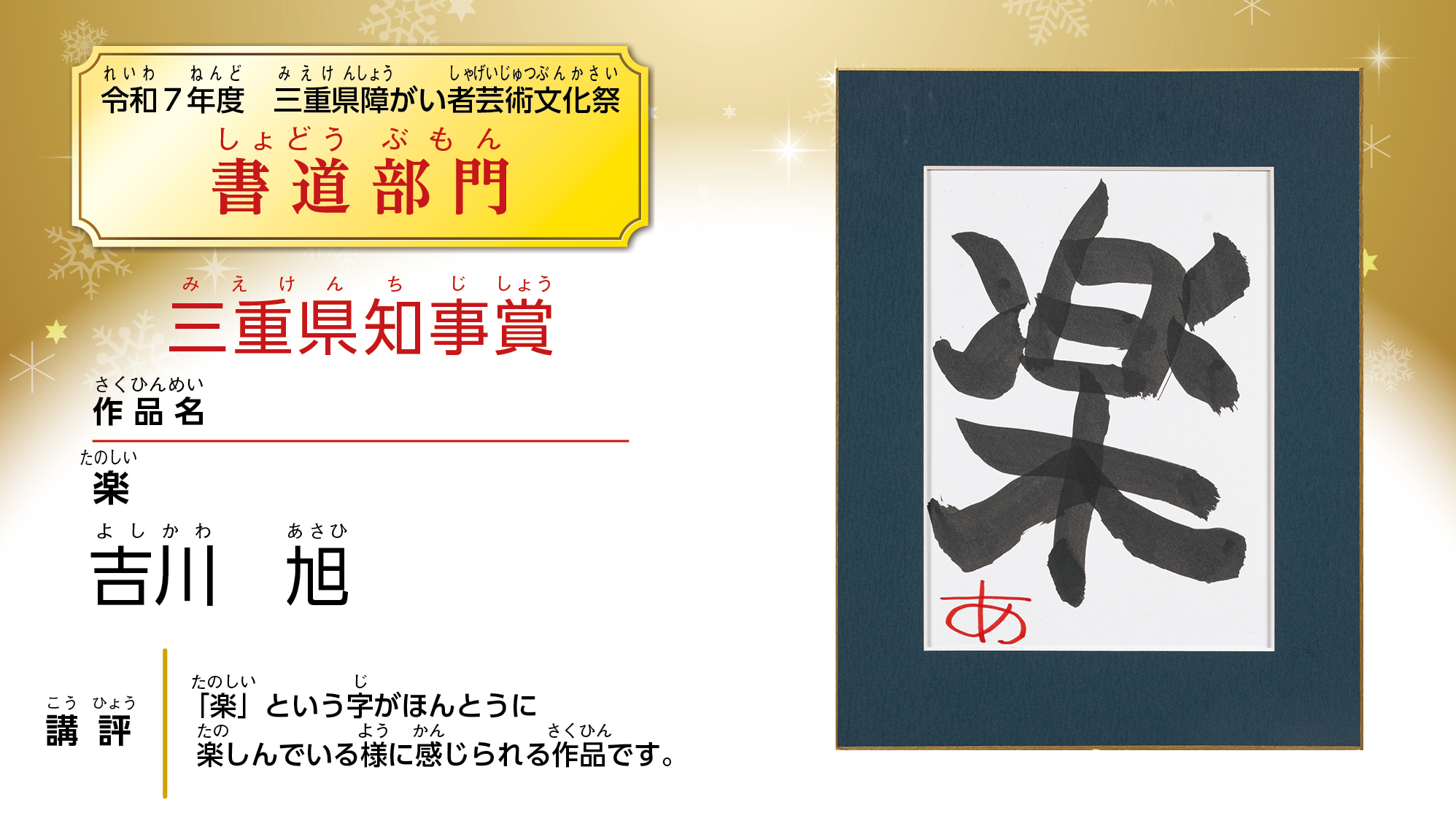 令和7年度三重県障がい者芸術文化祭 受賞者一覧表(PDF)はこちら